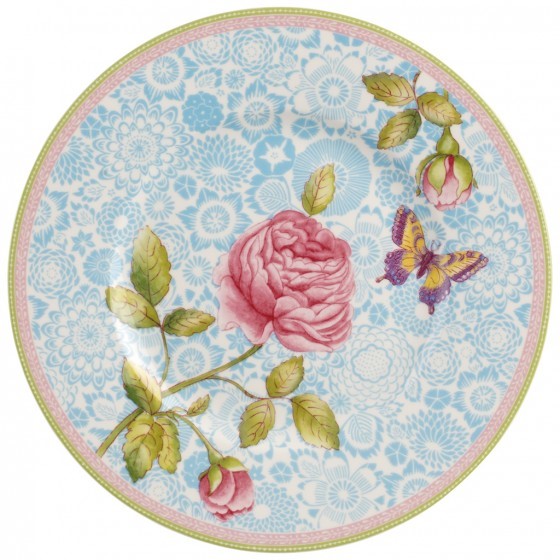 Il servizio è composto da piatti, tazze, piattini, una teiera, una lattiera, una zuccheriera, una palettina per torte, un portauova con rispettivi cucchiaini, piccole ciotole e una scatolina con coperchio. Le tazze rappresentano la scelta perfetta per soddisfare l’ora del tè. Il piccolo vassoio a due livelli consente presentazioni sorprendenti di cupcake, amaretti o cioccolatini, evocando con le sue decorazioni un ambiente caldo ed accogliente.