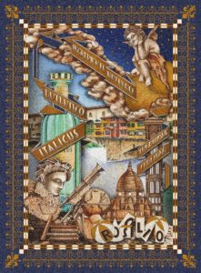 Attraverso la sua raffigurazione artistica, Mo Coppoletta porta ITALICUS®, con la sua originale bottiglia in vetro temperato di tonalità cromatica acquamarina, a fare un viaggio attraverso l’Italia. Ispirato dalle antiche locandine pubblicitarie di inizio secolo commissionate dalle aziende liquoristiche, con il trittico Coppoletta riprende una forma artistica ormai caduta in disuso, facendo rivivere l’arte in tutta la sua forma. L’opera di Mo Coppoletta celebra ITALICUS® anche in questo senso: il leitmotiv della rivisitazione dell’arte è infatti lo stesso che accompagna Art of Italicus, competizione lanciata tra i migliori bartender che vuole celebrare l’espressione artistica e il talento creativo del nostro paese.
